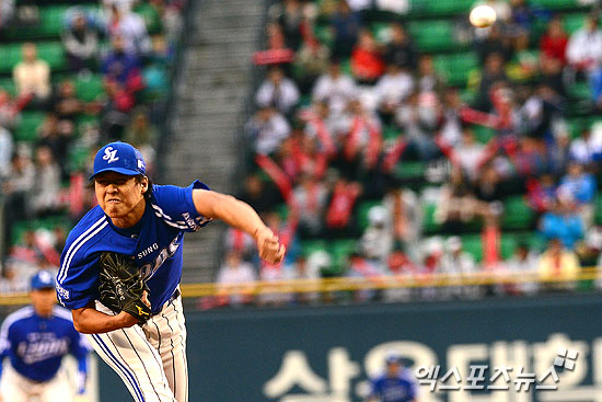 [엑스포츠뉴스 = 권태완 기자] 29일 오후 서울 잠실야구장에서 열린 '2013 프로야구' 삼성 라이온즈와 LG 트윈스의 경기에 삼성 선발투수 차우찬이 투구를 하고 있다.