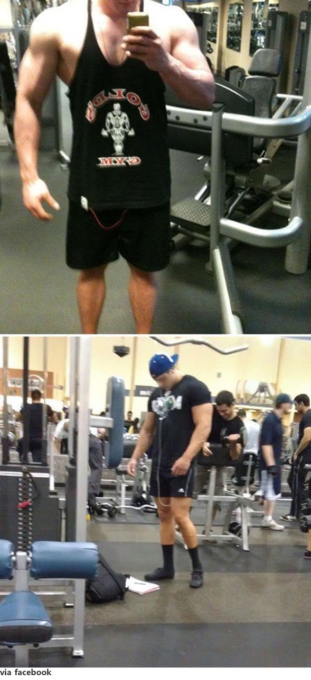 공개된 '불균형 보디빌더' 사진 속에는 외국 헬스장의 모습이 담겨있다. 다양한 운동기구와 많은 사람들 사이에서 상체와 하체가 불균형을 이루는 한 남성이 눈에 띈다.