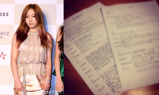 공개된 사진에는 A4용지에 글자가 가득 적혀있지만, 초점이 흐릿해서 잘 보이지 않는다. 소녀시대 신곡 가사가 적힌 종이인 것으로 추측된다.