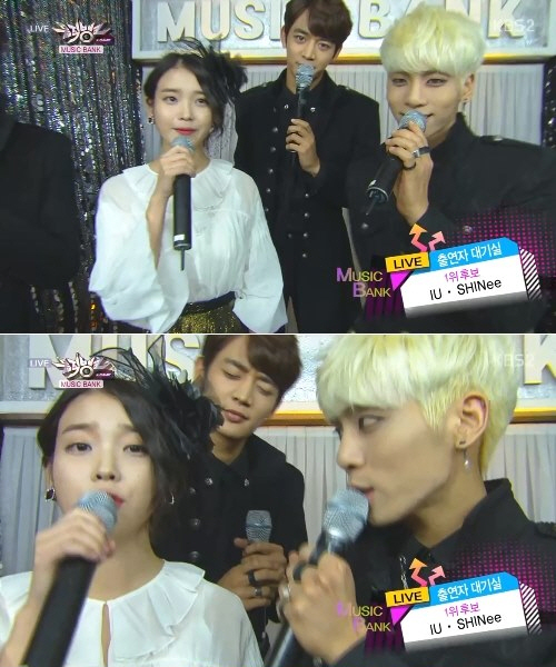 25일 방송된 KBS 2TV '뮤직뱅크'에서는 1위 후보로 맞붙은 아이유와 샤이니가 대기실 인터뷰가 공개됐다.