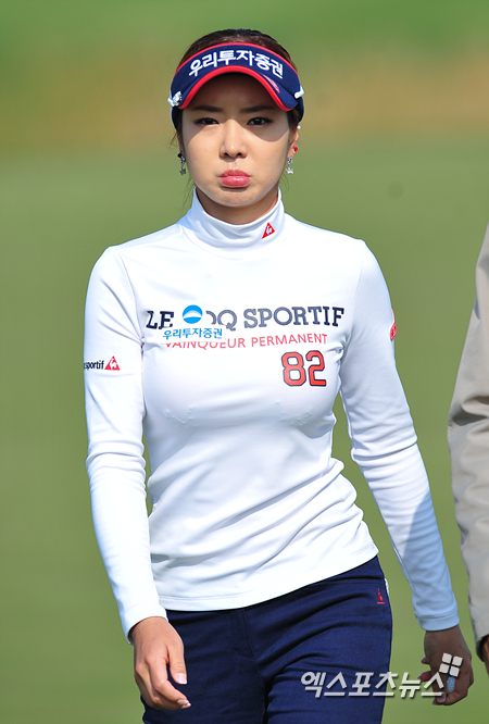 [엑스포츠뉴스=영종도, 권혁재 기자] 27일 오전 인천 영종도 스카이72 골프클럽 하늘코스(파72/6,688야드)에서 열린 'KB금융 STAR 챔피언쉽'(총상금 7억 원, 우승상금 1억 4천만 원) 4라운드 경기, 안신애(23, 우리투자증권)가 18번홀 파로 마감한 후 만족스럽지 못한 표정을 짓고 있다.