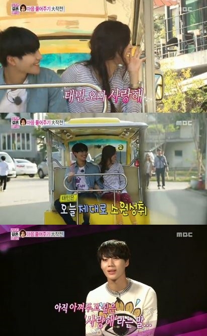 26일 방송된 MBC '우리 결혼했어요 시즌4'에서는 태민의 짓궂은 장난 때문에 화가 난 손나은의 마음을 달래주기 위해 고군분투하는 그의 모습이 그려졌다.