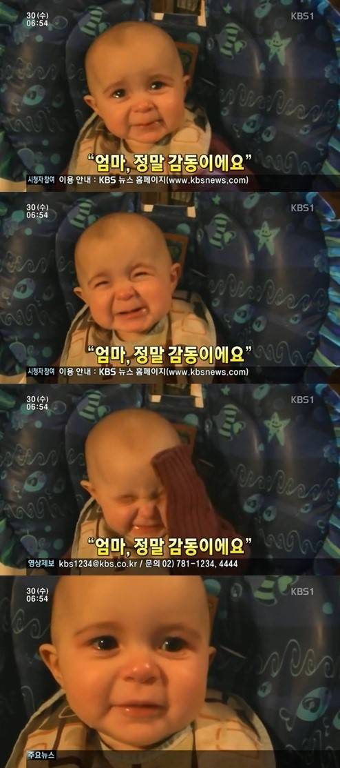 공개된 '엄마 노래에 감격한 아기' 영상 속에는 생후 10개월의 귀여운 아기가 생글생글 웃고 있는 모습이 담겨있다. 아이는 엄마가 노래를 부르기 시작하자 갑자기 울상을 짓더니 이내 눈물을 뚝뚝 흘렸다.