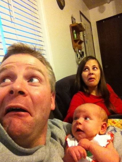 공개된 사진 속에는 아빠와 엄마, 딸이 나란히 한 곳을 응시하는 모습이 담겨있다. 세 사람 모두 놀란 듯한 눈과 다물어지지 않는 입 등 똑같은 표정을 짓고 있다.