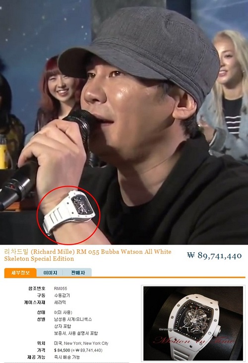 게시물에 따르면 이날 양현석이 차고 나온 시계는 R브랜드의 8천 만 원 대의 고급 시계이다.