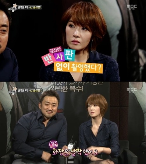 10일 방송된 MBC '섹션TV 연예통신'에서는 김선아가 영화 '더 파이브'에서 캐릭터를 위해 반사판 없이 촬영에 임했다고 털어놨다.