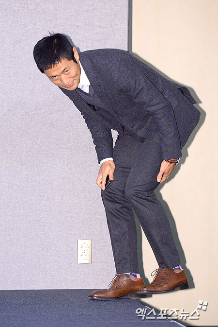 [엑스포츠뉴스 = 권태완 기자] 14일 오전 서울 신문로 대한축구회관에서 열린 '이영표 은퇴 기자회견'에 이영표가 입장하고 있다.