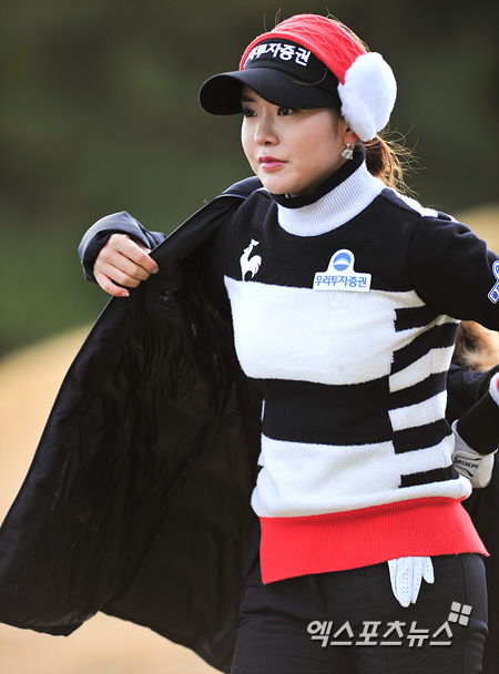 [엑스포츠뉴스=순천, 권혁재 기자] 17일 전남 순천시 승주 컨트리클럽(파72/6,642야드)에서 열린 KLPGA 투어 '조선일보-포스코 챔피언십 2013'(총상금 5억, 우승상금 1억) 최종 3라운드 경기, 안신애(23, 우리투자증권)가 10번홀 티샷을 한 후 재킷을 입으며 이동하고 있다.