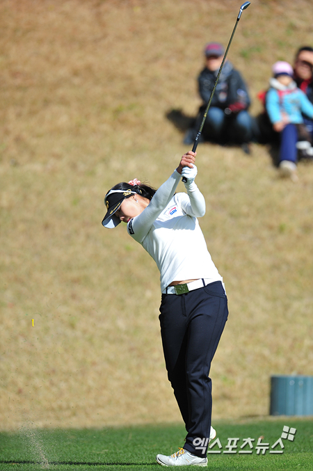 [엑스포츠뉴스=순천, 권혁재 기자] 17일 전남 순천시 승주 컨트리클럽(파72/6,642야드)에서 열린 KLPGA 투어 '조선일보-포스코 챔피언십 2013'(총상금 5억, 우승상금 1억) 최종 3라운드 경기, 허윤경(23, SBI)이 5번홀 티샷을 하고 있다.