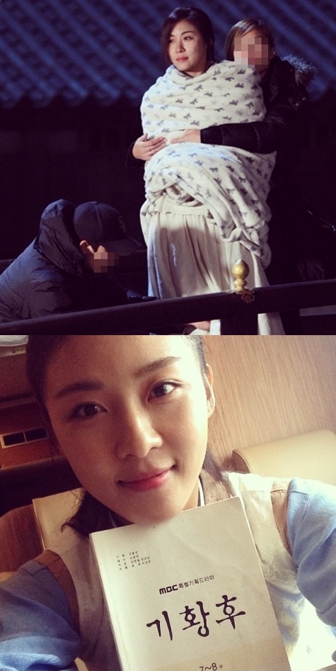 공개된 사진 속에는 하지원이 '기황후' 야외 촬영장에서 밤까지 이어지는 촬영에 추위를 막고자 온 몸에 담요를 꽁꽁 둘러 싸매고 있는 모습이 담겨져 있다. 매우 두툼하게 둘러싼 담요와 뒤에서 백허그하고 있어 보기만 해도 따뜻함이 느껴진다.