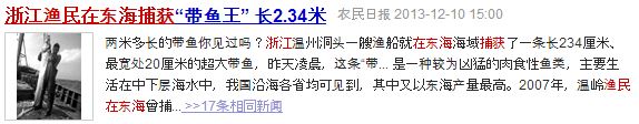 [엑스포츠뉴스=대중문화부] 중국 저장성 원저우시에서 2.32m 초대형 갈치가 잡혔다.