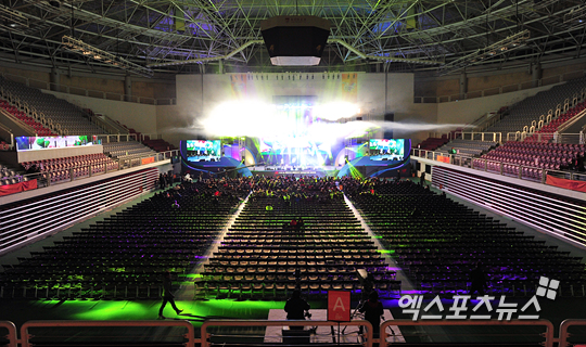[엑스포츠뉴스=권혁재 기자] 22일 오후 서울 고려대 화정체육관에서 열린 '류현진의 희망던지기 몬스터쇼'가 30분 지연되어 시작된 공연장 객석이 텅비어있다.