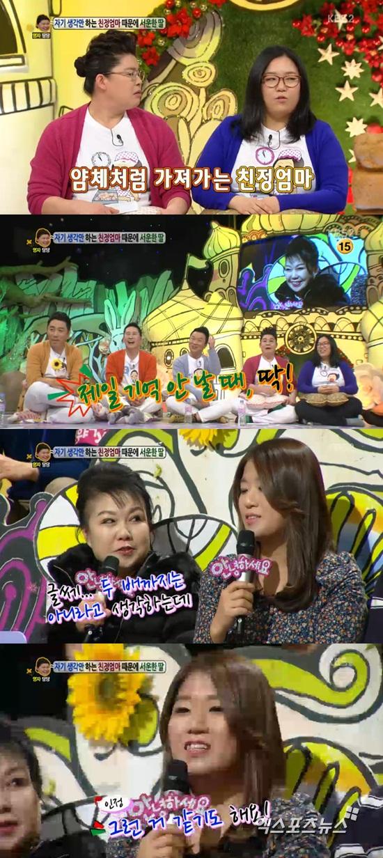 스튜디오에 등장한 얌체 엄마는 "내가 원래 좀 푼수다. 딸이 친정 엄마 같다. 마음이 편하다"라고 밝혔다.