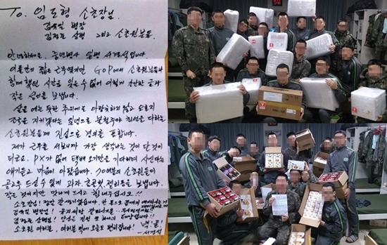 서경석은 "제가 근무를 서보니까 가장 생각나는 것이 단 것이었다"며 "70여 분의 소초원들이 골고루 드실 수 있게 과자, 초콜릿, 젤리 등을 보냅니다. 작은 것이지만 맛나게 드시고 힘내주십시오"라며 응원의 메시지를 전했다. 또한 함께 생활했던 병사들의 이름을 하나하나 언급하는 세심함도 잊지 않았다.