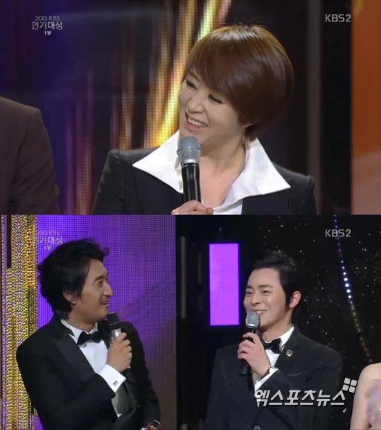 31일 오후 서울 영등포구 여의도동 KBS 공개홀에서 열린 '2013 KBS 연기대상'에서는 조정석-아이유, 지성-황정음, 오지호-김혜수, 주원-문채원이 베스트 커플상을 수상했다.