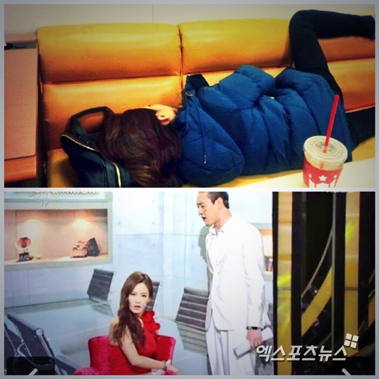공개된 사진 속 김지민은 긴 의자에 편안한 자세로 누워 숙면을 취하고 있다.