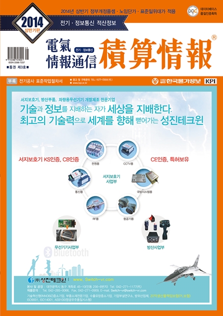이번에 발행한 '2014 전기·정보통신 적산정보'는 표준품셈과 조달청에서 발표한 전기공사 일위대가표, 한국정보통신공사협회에서 발표한 정보통신공사 일위대가표를 한눈에 비교하여 볼 수 있도록 했음은 물론, 주요 공사 종목별 표준작업절차서를 게재했다. 1100쪽, 5만원, (사)한국물가정보.