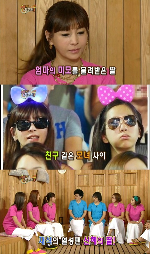 황신혜는 "보통 10대들은 잘생긴 사람을 좋아하지 않나. 근데 내 딸은 유재석을 좋아한다"며 "남자보는 눈이 나랑 다르다고 생각했다"고 밝혀 웃음을 자아냈다.