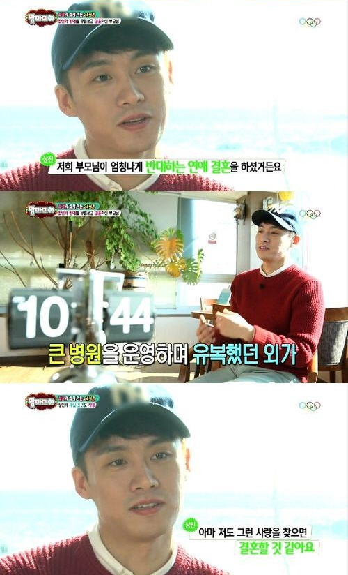 오상진은 "그래서 부모님이 사랑을 제일 강조하신다. 외적인 조건이나 집안에 대한 얘기를 별로 안 하신다. 나도 그런 사랑을 찾게 되면 결혼할 것이다"고 설명했다.