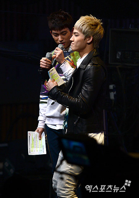 [엑스포츠뉴스 = 권태완 기자] 20일 오후 서울 상암동 CJ E&M에서 열린 Mnet '엠카운트다운'에 MC 갓세븐의 JB와 주니어가 인사를 하고 있다.
