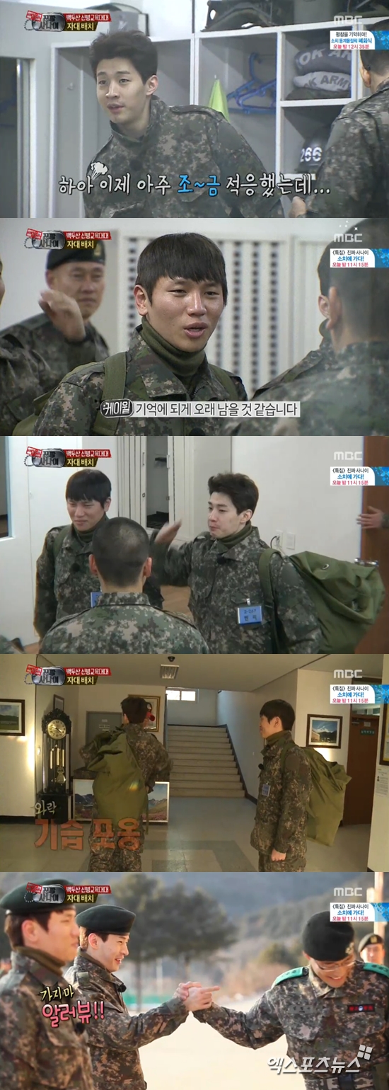 이날 방송에서 헨리와 케이윌은 백두산 신병교육대대를 떠나며 함께 훈련을 했던 동기들과 이별의 시간을 맞았다. 특히 헨리는 눈시울을 붉히며 이별을 아쉬워 했다.
