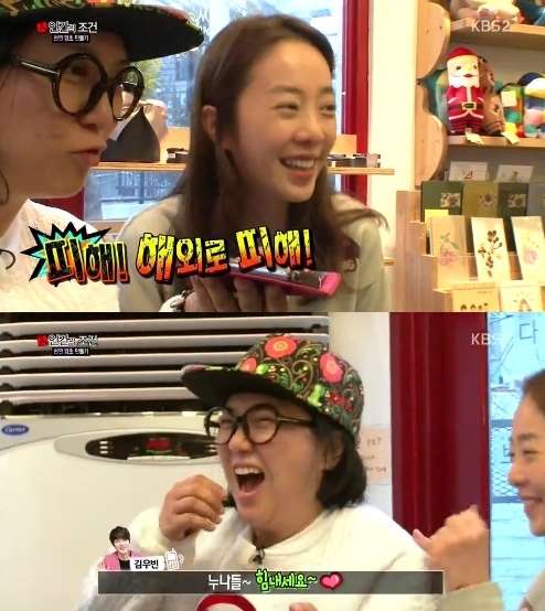 1일 방송된 KBS 2TV '인간의 조건'에서는 김숙이 김우빈과 문자를 주고받다 전화를 거는 모습이 그려졌다.