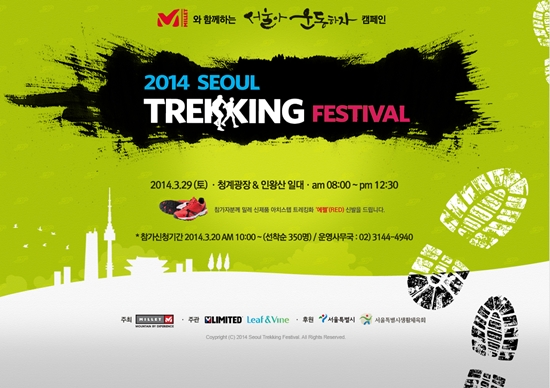[엑스포츠뉴스=대중문화부] 아웃도어 브랜드 밀레가 2014 서울 트레킹 페스티벌 '서울아 운동하자' 접수를 시작했다.