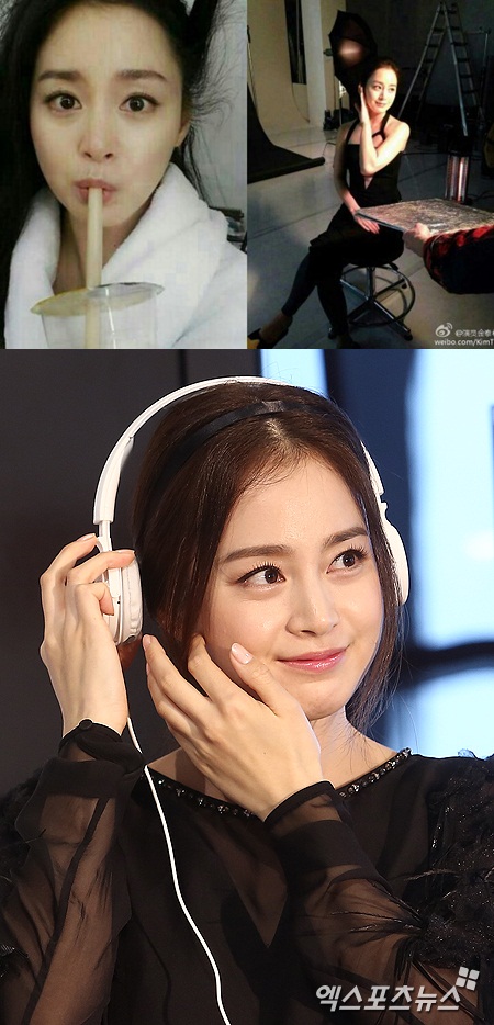 김태희는 20일 자신의 웨이보에 "지면 촬영중이에요. 헤어 변형하는 동안 버블티로 당 보충하는 중. 완전 맛있어요"라는 글과 함께 이른바 '김태희 근황' 사진을 게재했다.