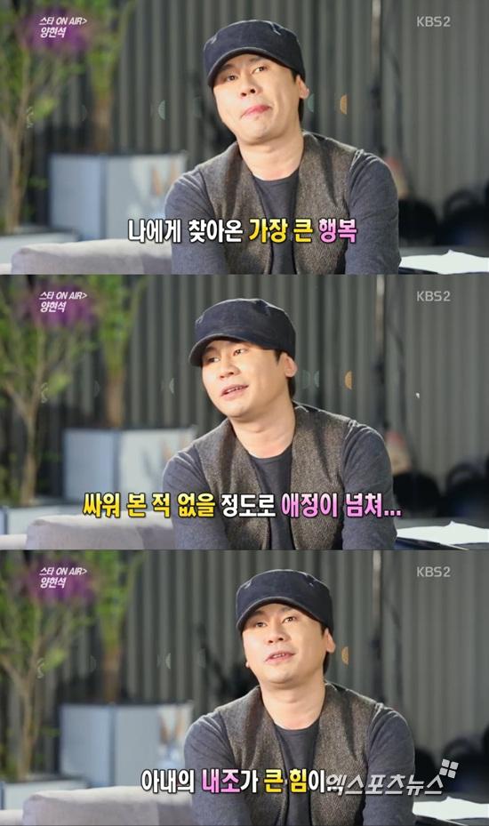 [엑스포츠뉴스=원민순 기자] 양현석이 아내 이은주와 한 번도 싸운 적 없다고 밝혔다.