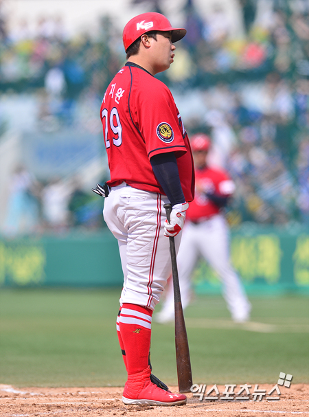 [엑스포츠뉴스=대구, 권혁재 기자] 30일 오후 대구시민운동장야구장에서 열린 '2014 한국야쿠르트 세븐 프로야구' KIA 타이거즈와 삼성 라이온즈의 경기, 1회초 2아웃 KIA 나지완이 룩킹 삼진을 당하고 심판을 바라보고 있다.