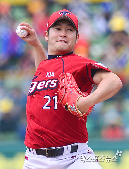 [엑스포츠뉴스=대구, 권혁재 기자] 30일 오후 대구시민운동장야구장에서 열린 '2014 한국야쿠르트 세븐 프로야구' KIA 타이거즈와 삼성 라이온즈의 경기, 1회말 KIA 선발투수 송은범이 힘차게 공을 던지고 있다.