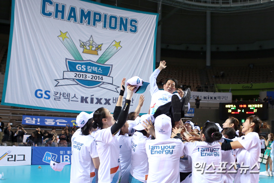 [엑스포츠뉴스=화성, 김한준 기자] 4일 오후 경기도 화성시 향남읍 화성종합경기타운 실내체육관에서 열린 'NH농협 2013-2014 V리그' 여자부 화성 IBK기업은행 알토스와 평택 GS 칼텍스 KIXX의 챔피언결정전 5차전 경기, GS 칼텍스가 세트스코어 3-1(27-25, 25-21. 22-25, 29-27)로 승리하며 6년만에 우승을 차지했다.