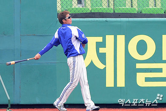 [엑스포츠뉴스=대구, 김한준 기자] 11일 오후 대구시민야구장에서 열린 '2014 한국 야쿠르트 세븐 프로야구' SK 와이번스와 삼성 라이온즈의 경기, 경기 전 삼성 임창용이 훈련에 임하고있다.