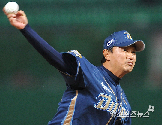 [엑스포츠뉴스=인천, 권혁재 기자] 22일 오후 인천 문학야구장에서 열린 '2014 한국야쿠르트 세븐 프로야구' NC 다이노스와 SK 와이번스의 경기, NC가 5-4로 앞선 8회말 1아웃 마운드에 오른 NC 손민한이 힘차게 공을 던지고 있다.