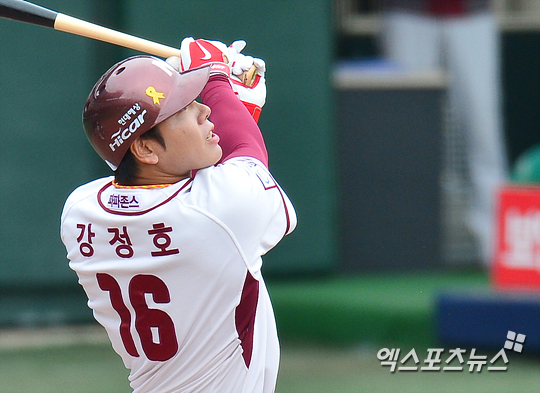 [엑스포츠뉴스=권혁재 기자] 11일 오후 서울 목동야구장에서 열린 '2014 한국야쿠르트 세븐 프로야구' LG 트윈스와 넥센 히어로즈의 경기, 2회말 2아웃 만루 넥센 강정호가 좌월 만루포를 날리고 있다.