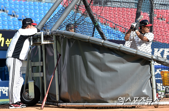 [엑스포츠뉴스=권혁재 기자] 14일 오후 서울 송파구 잠실야구장에서 열린 '2014 한국야쿠르트 세븐 프로야구' 롯데 자이언츠와 LG 트윈스의 경기, 경기전 LG 양상문 감독이 취재진들과 인터뷰를 마치고 선수들의 훈련을 지켜보고 있다.