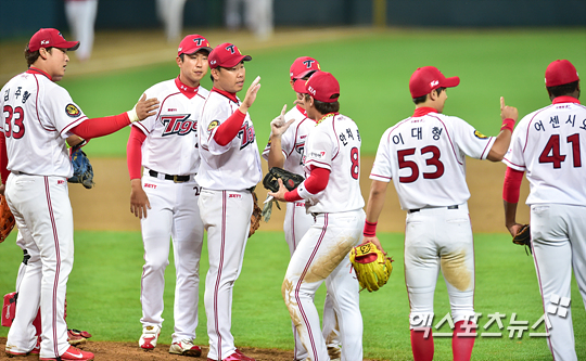 [엑스포츠뉴스=광주, 권혁재 기자] 20일 오후 광주-KIA챔피언스필드에서 열린 '2014 한국야쿠르트 세븐 프로야구' LG 트윈스와 KIA 타이거즈의 경기, KIA가 10-7로 승리를 거두며 3연패 탈출에 성공했다. 반면 최하위 LG는 25번째 패배(12승 1무)를 떠안게 됐다.