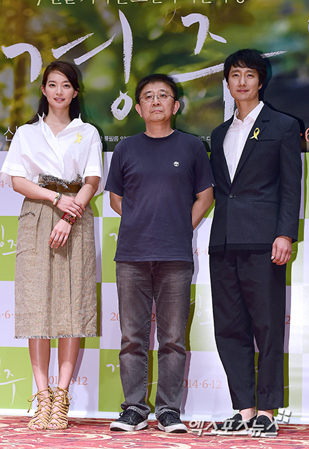 [엑스포츠뉴스=김한준 기자] 21일 오전 서울 자양동 롯데시네마 건대입구점에서 열린 영화 '경주' 제작보고회에 참석한 신민아, 장률 감독, 박해일이 포토타임을 갖고 있다.