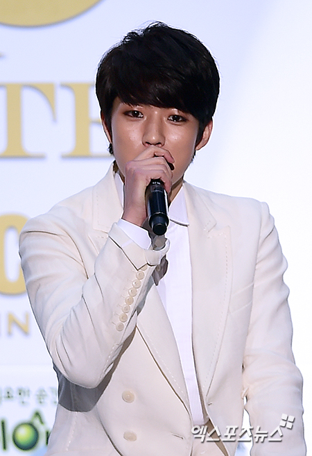 [엑스포츠뉴스=김한준 기자] 21일 오후 서울 송파구 잠실실내체육관에서 열린 '인피니트 1.2.3 쇼케이스'에 참석한 인피니트 성열이 인사말을 하고 있다.