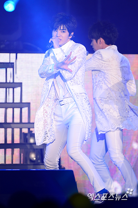 [엑스포츠뉴스=김한준 기자] 21일 오후 서울 송파구 잠실실내체육관에서 열린 '인피니트 1.2.3 쇼케이스'에 참석한 인피니트 성종이 멋진 공연을 펼치고 있다.
