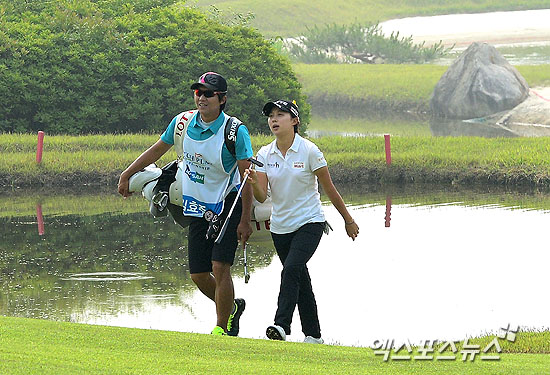 [엑스포츠뉴스=춘천 권태완 기자] 24일 오전 강원도 춘천시 라데나골프클럽에서 열린 '2014 두산 매치플레이 챔피언쉽' 16강전에 김효주(19, 롯데)가 9번홀 그린으로 이동하고 있다.