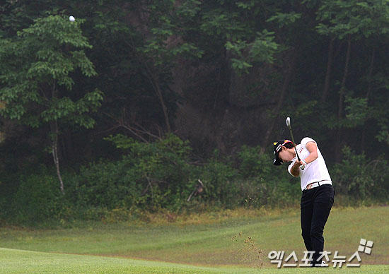 [엑스포츠뉴스=춘천 권태완 기자] 24일 오전 강원도 춘천시 라데나골프클럽에서 열린 '2014 두산 매치플레이 챔피언쉽' 16강전에 김효주(19, 롯데)가 1번홀 세컨샷을 하고 있다.