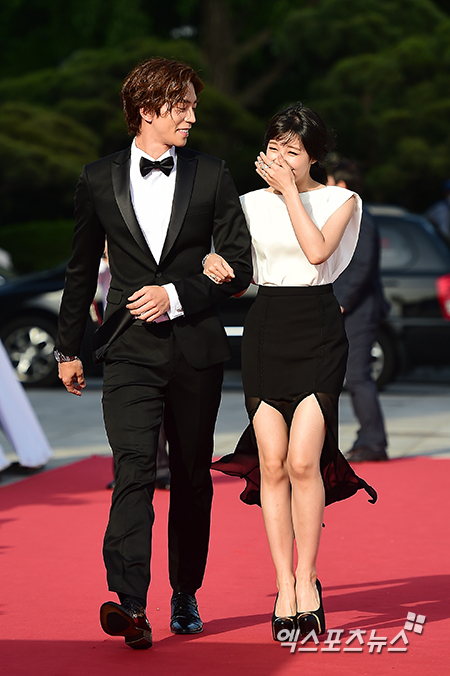 [엑스포츠뉴스=김한준 기자] 27일 오후 서울 회기동 경의대학교 평화의전당에서 열린 '제50회 LF 백상예술대상 시상식' 레드카펫에 참석한 신성록과 정은지가 레드카펫을 밟고 있다.