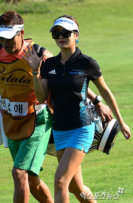 [엑스포츠뉴스=제주 권태완 기자] 6일 오전 제주도 롯데 스카이힐 CC 제주에서 열린 'KLPGA 제4회 롯데칸타타 여자오픈' 1라운드 경기에  안신애(해운대비치골프앤리조트)가 취재진에게 인사를 하고 있다.