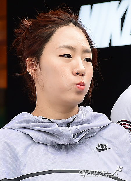 [엑스포츠뉴스=김한준 기자] 13일 오전 서울 역삼동 나이키 강남 플래그십 스토어에서 열린 '나이키 강남 플래그십 스토어 오픈 행사'에 참석한 이상화가 포토타임을 갖고 있다.