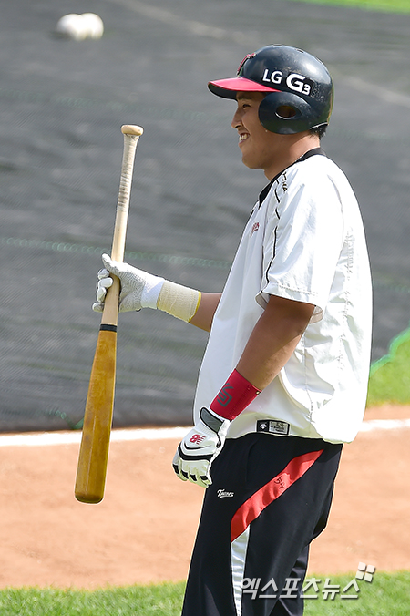 [엑스포츠뉴스=김한준 기자] 13일 오후 서울 송파구 잠실야구장에서 열린 '2014 한국야쿠르트 세븐 프로야구' SK 와이번스와 LG 트윈스 경기, 경기 전 LG 채은성이 타격 훈련 전 배트를 돌리고 있다.