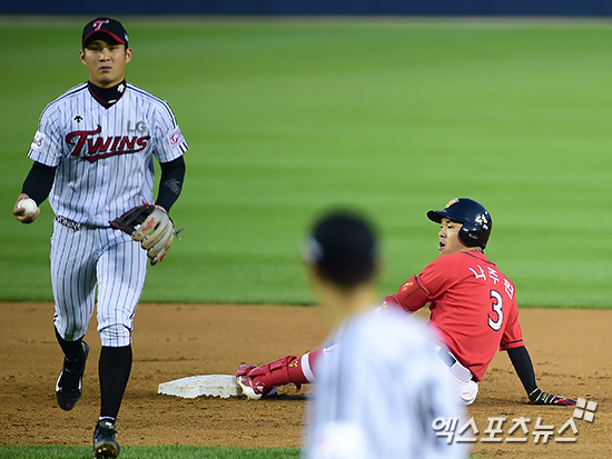 [엑스포츠뉴스=김한준 기자] 13일 오후 서울 송파구 잠실야구장에서 열린 '2014 한국야쿠르트 세븐 프로야구' SK 와이번스와 LG 트윈스 경기, 5회초 2사 2, 3루 SK 나주환이 2타점 적시타를 친 후 2루에서 아웃된 후 아쉬워하고 있다.