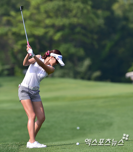 [엑스포츠뉴스=제주, 권혁재 기자] 14일 오전 제주시 애월읍 엘리시안 제주 컨트리클럽에서 열린 KLPGA ‘S-OIL 챔피언스 인비테이셔널’(총상금 6억원, 우승상금 1억2,000만원) 2라운드 경기, 안신애(23, 해운대비치골프앤리조트)가 15번 홀 써드샷을 하고 있다.