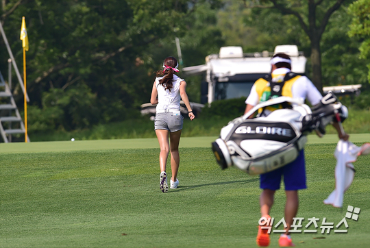 [엑스포츠뉴스=제주, 권혁재 기자] 14일 오전 제주시 애월읍 엘리시안 제주 컨트리클럽에서 열린 KLPGA ‘S-OIL 챔피언스 인비테이셔널’(총상금 6억원, 우승상금 1억2,000만원) 2라운드 경기, 안신애(23, 해운대비치골프앤리조트)가 15번 홀 써드샷을 한 안신애가 볼마킹을 위해 그린으로 달려가고 있다.