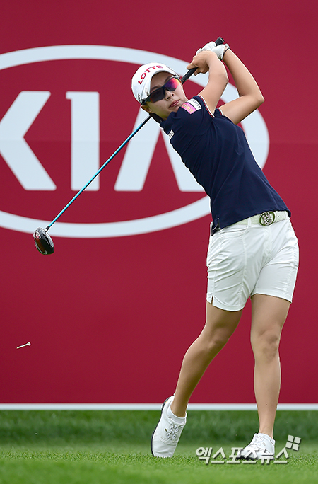 [엑스포츠뉴스=인천, 김한준 기자] 19일 오후 인천 청라지구 베어즈베스트 청라골프클럽(파72·6476야드)에서 열린 '제28회 한국여자오픈'(총상금 7억원, 우승상금 2억원) 1라운드 경기, 김효주(19, 롯데)가 4번홀 티샷을 날리고 있다.